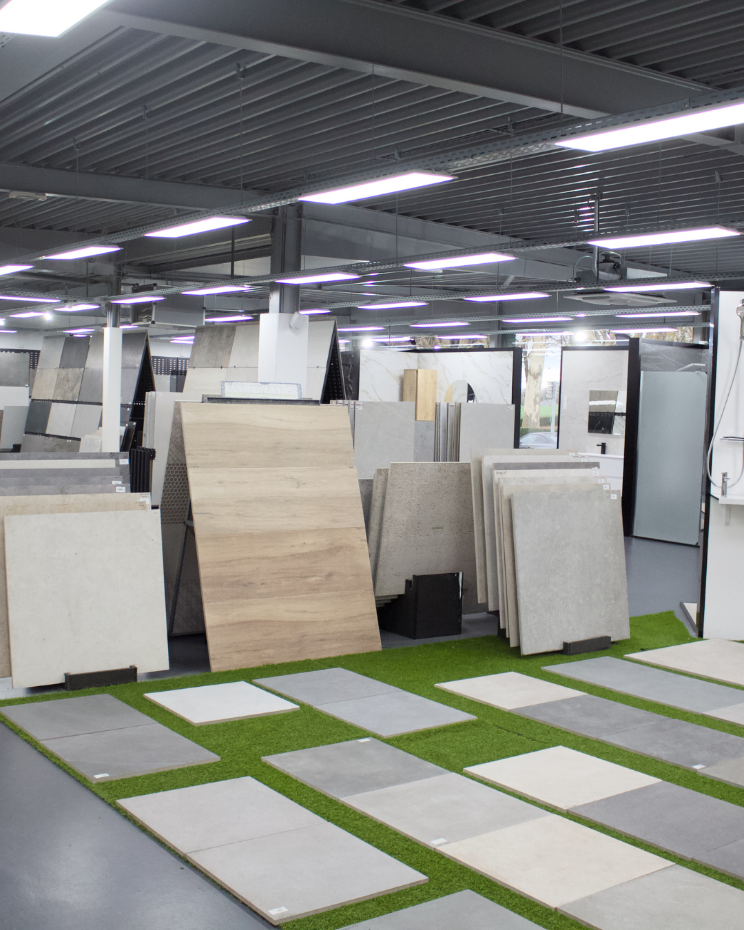 Chez AM Outlet Carrelages, l’essentiel de nos collections est visible directement en showroom. Nous privilégions l’expérience sur place : comparer les matières, voir les formats à grande échelle et visualiser les ambiances complètes.